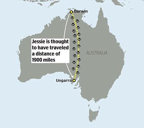 据悉,杰西是从澳大利亚北部城市达尔文失踪,一年以后在澳大利亚南部艾尔半岛的旧居附近出现。这两处直线距离就有3200公里,中间还隔着一片沙漠。主人舍瑞对此迷惑不解:“我也不清楚它是怎么回去的。它不喜欢坐车,所以我想它可能是走回去的。”