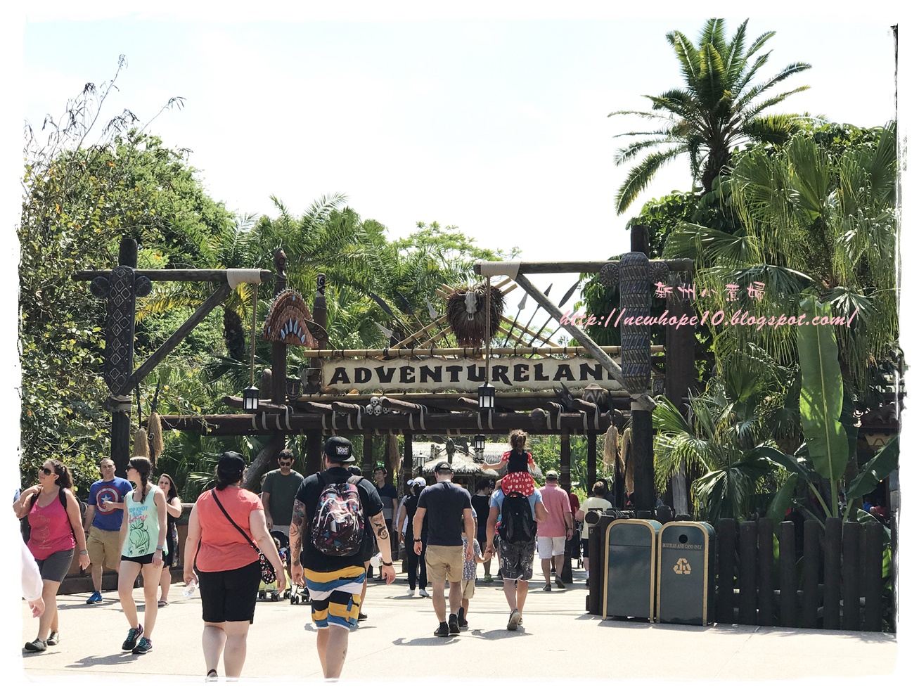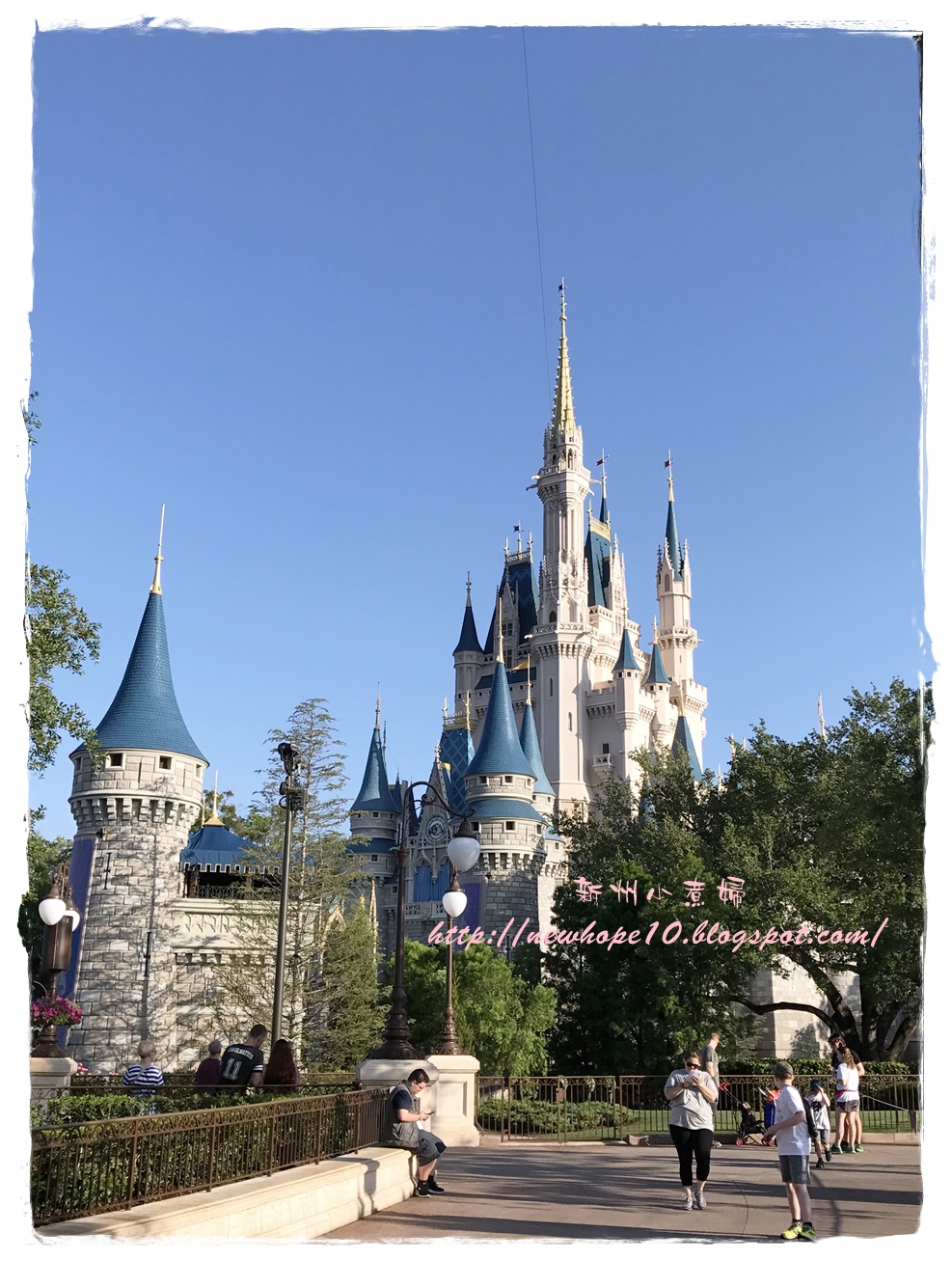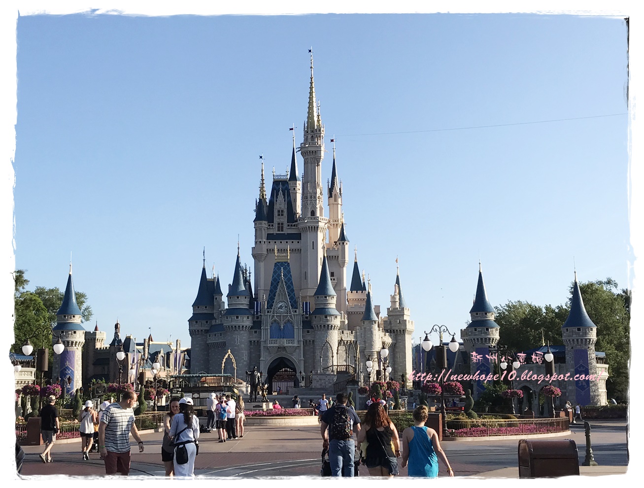 吃完早餐後約7:45 AM準備來去搭接駁車,住在迪士尼飯店有個好處就是接駁車多、又很早就開始了,我們這間飯店是7:30開始接送,這間飯店到Magic Kingdom大概20-30分鐘車程,到了以後還要走一小段路到門口驗票(magic band),建議可以開園前30-40分鐘就到園區內,這樣可以先慢慢悠閒的拍拍照,先走到城堡旁各區的入口等,通常工作人員都會在每個園區入口拉起一條線,等九點後米奇和公主們出來唱歌迎接大家後就可以衝了~