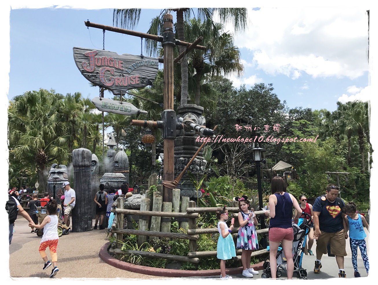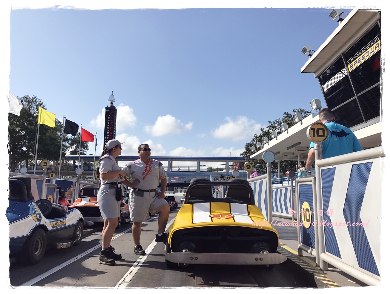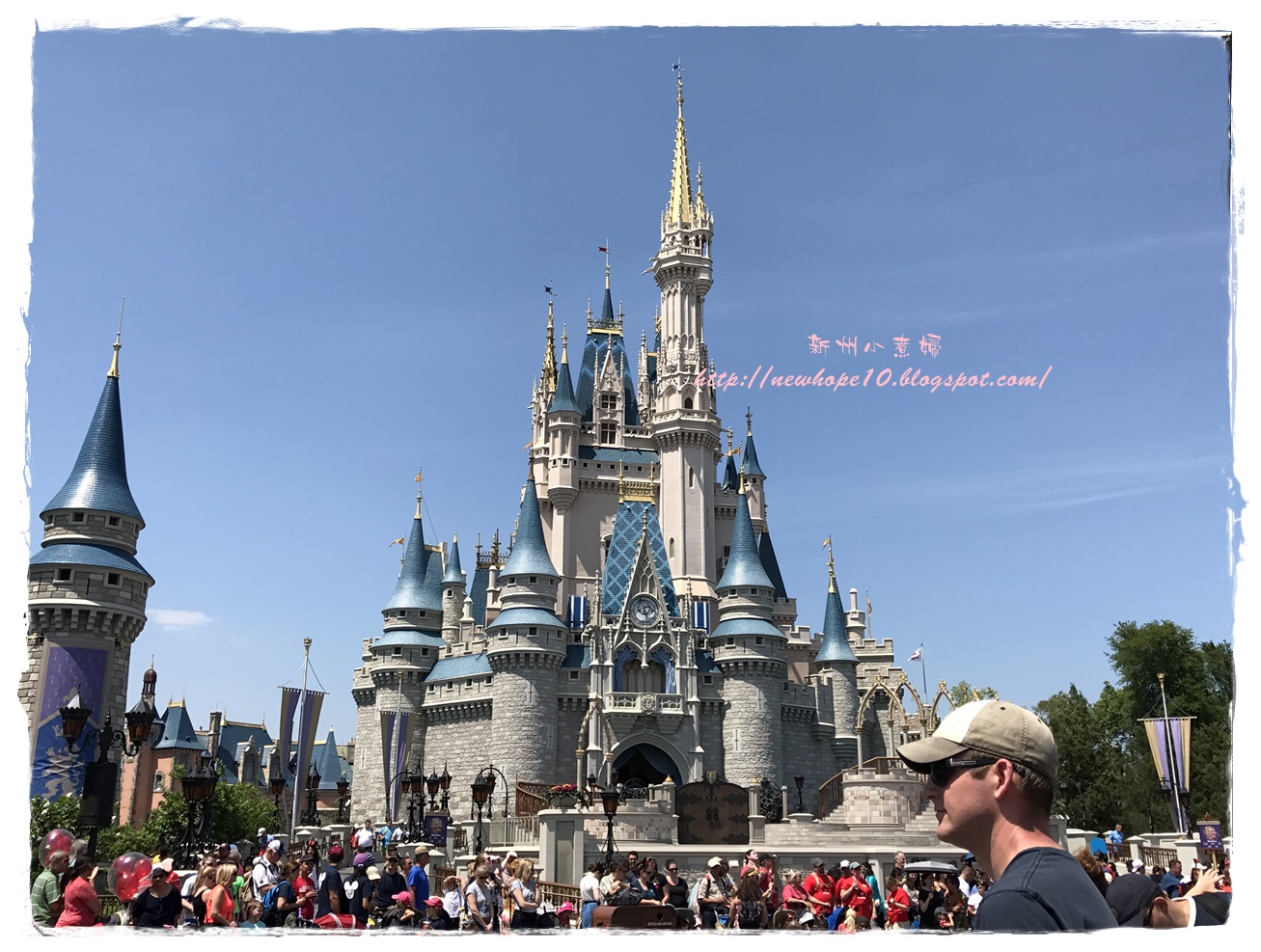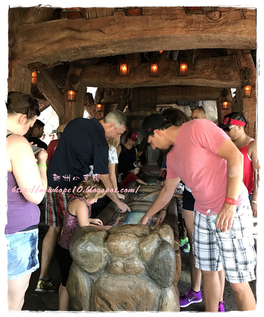 吃完早餐後約7:45 AM準備來去搭接駁車,住在迪士尼飯店有個好處就是接駁車多、又很早就開始了,我們這間飯店是7:30開始接送,這間飯店到Magic Kingdom大概20-30分鐘車程,到了以後還要走一小段路到門口驗票(magic band),建議可以開園前30-40分鐘就到園區內,這樣可以先慢慢悠閒的拍拍照,先走到城堡旁各區的入口等,通常工作人員都會在每個園區入口拉起一條線,等九點後米奇和公主們出來唱歌迎接大家後就可以衝了~