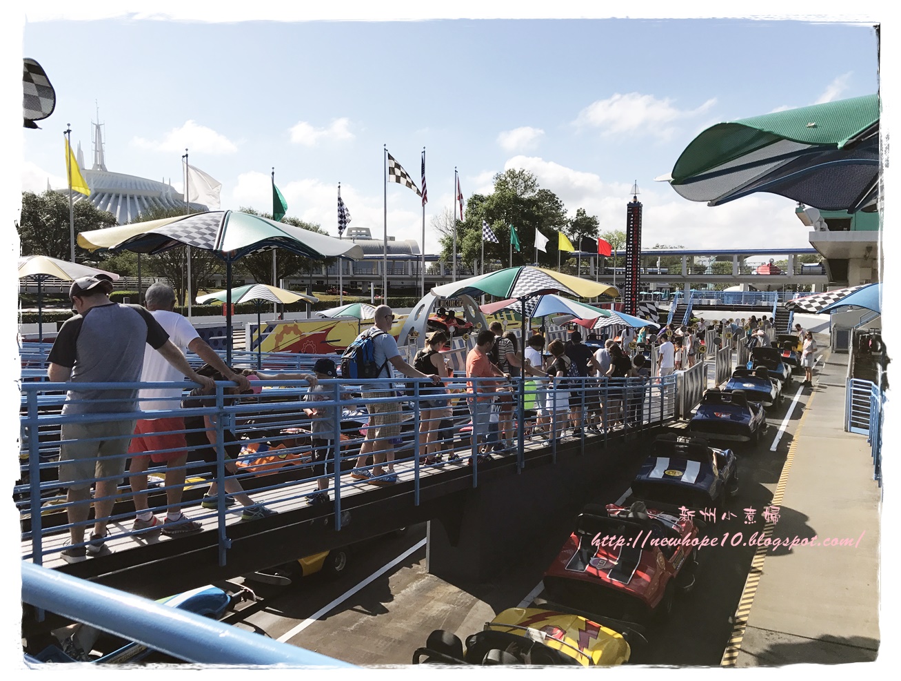 等他們唱完歌大家都各自往想去的區衝了! Fantasyland是最多人排的!~ 原本也想衝Fantasyland但真的超多人排隊的,怕去也是玩不到幾樣,決定還是先衝最近的Tomorrowland!