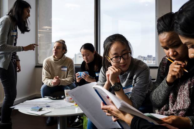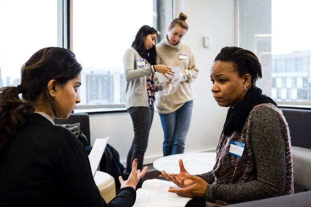 Chrystal Smith’s “lost years” in math were in Grades 10 and 11, a time when she struggled with algebraic concepts. She is more confident in the subject now, but admits being a bit anxious. Ms. Smith, who is doing her masters in teaching at OISE, joined classmates for an informal tutorial session on a Saturday morning earlier this year, organized by Dr. Reid, during which they were guided on math content by a mix of finance and business students, one of whom was pursuing a PhD.