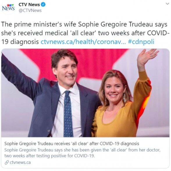 总理夫人苏菲·格里高·杜鲁多(Sophie Gregoire Trudeau)周六(3月28日)晚在Facebook上发文说,在确诊新冠两周后,她的医生宣布她已经“痊愈”对于总理夫人苏菲痊愈的消息,杜鲁多说我们都对此感到很高兴他说,因为他在几天前与有明显症状的人有接触,所以出于谨慎,他继续隔离在不少华人网友眼里,总理夫人就是加拿大版“吹哨人”她带孩子离开,留杜鲁多继续隔离
