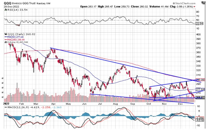 虽然今天QQQ跌破了260的关键支撑位,我还是决定把QQQ的多仓拿到年后再说,一方面投入的资金量可控,目前也只有不到5%的PAPER LOSS,另一方面我还是觉得近期的走势有点太极端了,看看TSLA近期的走势就可见一斑,而市场情绪的反转或许只需要美联储官员的一句话。
