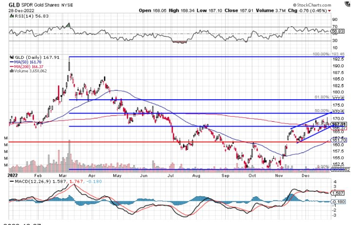 黄金:昨天冲高回落留下长长上影线后今天黄金顺势回调,GLD下跌了0.45%,成交量萎缩的厉害,目前GLD依然在11月下旬以来的上升通道里,如果GLD有效跌破166还是要考虑短期离场的,否则可以看它继续走通道,可以看高至172.5附近。黄金股今天跌的比较惨,GDXJ大跌3.83%,把昨天的盈利都跌光了,目前恰好站在200日均线的位置,我会盯着GLD做GDXJ,如果GLD跌破166或者GDXJ有效跌破34.5都要考虑暂时出局观望,中长期看好黄金类资产的观点不动摇。