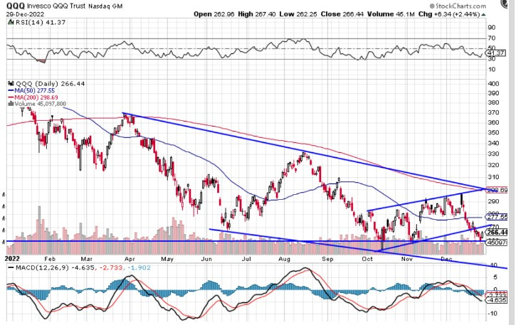 我倾向于认为今天的反弹会有一定的持续性,从时间窗口看,下一次美联储加息要到2月初了,这给市场留足了时间去做一轮推升,而市场最担心的季报季节也在两周之后,下周我们会看到新一轮的非农数据,任何就业放缓的消息都可能推高股市,即便就业依然强劲,市场也可以解读为美联储的政策的滞后性,下下周我们又会迎来新的CPI数据,而目前市场最有信心的部分就是能看到通胀数据的快速走低,之前也已经连续两个月以好于预期的CPI下降。所以从目前到季报季开始,市场不太会有什么突发引发市场暴跌的因素,而且这一轮QQQ很可能是已经走了一个HIGHER LOW,如果再结合中国疫情趋于稳定的消息,彼时再出现TSLA AAPL的空头回补,QQQ很可能会在目前的价位上大幅反弹。QQQ先看270的整数关口的阻力,如果隔夜没有特别的利空,明天市场再拉一下的可能性还是挺大的,260是近期的重要支撑。 回顾这一轮抄底,今天大涨后已经出水,但对市场的极为弱势的走势是缺乏心理准备的。我之前抄底的理由并非基于基本面或者技术面,而更多的基于季节性以及在大跌之年的WINDOW DRESSING的需要,但市场一熊到底,割肉盘止损盘一直打到昨天也就是TAX LOSS SELLING的最后一天,这样走势似乎预示着资本相信现在兑现了损失后未来还可以以更便宜的价格买回,从近期走势也能看出市场对2023年的悲观预期吧。 我的第一入点小仓位买入QQQ的2倍ETF HQU是QQQ在273附近(回头看着急了,因为当时手里大把现金,没有指数多仓,认为QQQ跌了20多可以下手),之后在270加了一点仓,市场反弹可以套利但没有走,跌到265附近第二次加仓,但昨天就不敢再次下手,怕仓位在一个方向上搞的太大,已经有做持久战的准备了。前面几个入点不佳,导致昨天看到非常好的机会也不敢下手了,但现在想清楚后面的时间节点、可能发生的事件、股指相对位置及盈亏比,大概率这一波交易还是会盈利收场。 美元指数:依然保持了12月以来的连续上涨不超过两天的规律,今天收了一根中阴线,跌幅超过0.5%,技术图形上看还是在12月份以来的收敛三角形中,今天下跌后处于收敛三角形的下边缘位置。美元指数今年一度暴涨19%,但从10月份以来一直处于下跌通道中,目前从一年度来说仅仅上涨了约8%,超过60%的今年涨幅跌没了,从年线上说是一根长长的上影线,2023年美元指数进一步回落的概率非常大。 黄金:美元下跌,黄金今天上涨了约0.6%,成交量不大,依然维持在近期的上升通道中,170依然是近期GLD的技术阻力位,如果能突破GLD可能会测试172.5近期上升通道的上沿位置。需要小心一点的是今天黄金股走势比较弱,今天QQQ大涨近3%,GLD涨0.7%,通常情况下GDXJ都会有3%+的涨幅,但今天GDXJ涨幅不足1%,这是需要警惕的信号。 免责声明:绿圈KOL中的所有数据,资讯,点评等内容仅供参考。本视频仅代表KOL观点,不代表绿圈的立场和观点。部分内容转自第三方媒体和机构,不保证其完全的准确性,真实性和有效性。不构成财务,投资建议,投资咨询意见或其他意见。买卖风险请观众谨慎对待,责任自负。 |