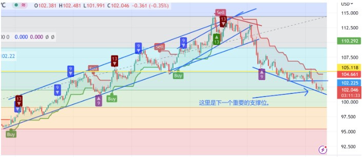 美元指数:美元指数有点积重难返的意思,昨天刚刚拉了一个单针探底,今天又继续下行,虽然美元指数仅仅跌了0.3%,但似乎这一轮跌势似乎没有到头的意思,如果在102附近美元指数不能迅速反弹,美元指数很可能还会进一步破位,100的整数关口可能是下一个重要的支撑。