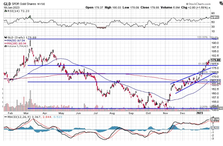 对了,俄罗斯的外汇构成会变成40%黄金60%人民币,这给希望去美元化的国家做了一个很标准的示范效应。技术图形上看,黄金突破了1930的关键阻力位,GLD在日线图也形成突破,近期呈现的就是加速上涨的趋势,黄金再次进入超买区间,真是每一个回调都是建仓的好机会,在目前这样的大环境下,不要去预测顶部了,耐心的等待拉升吧。