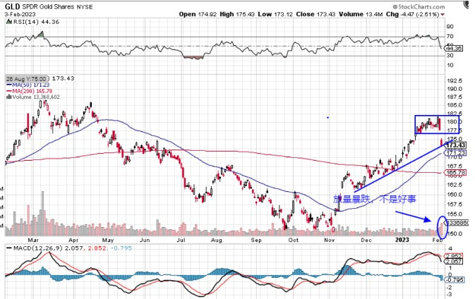 黄金:黄金两天从最高点到今天最低点跌了接近100美元,幅度超过5%,黄金的空头这一波真的是来势汹汹,这里绝对不能轻言抄底,即便我们看好未来的黄金走势,但这两天的暴跌,把黄金技术走势图砸坏了,就好比人重伤之后不可能立刻活蹦乱跳的,需要一个恢复期。GLD今天一下就打到了11月下旬以来的上升趋势线,而且放了不小的量,下跌动能强劲,感觉会进一步破位。