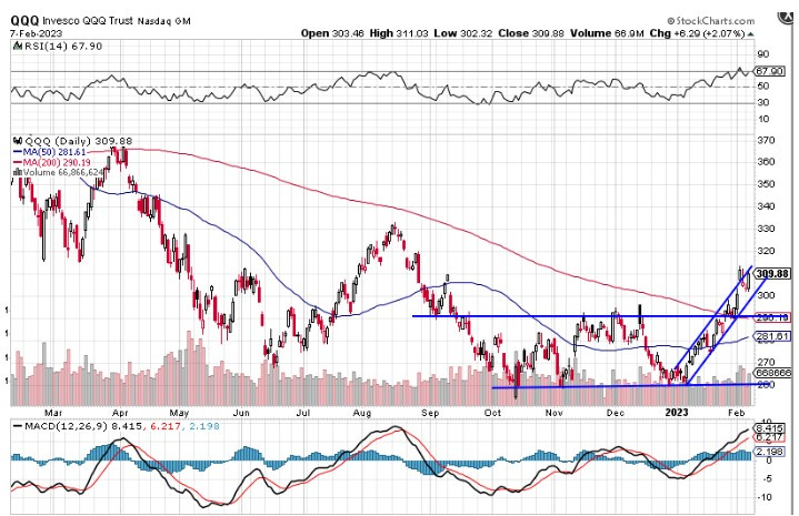 技术图形QQQ似乎走的好看了些,今天成交量明显放大而且总体保持强势,在调整两天后市场又回到了上升的趋势里,虽然我觉得市场的隐忧很多,但1月初以来的上升趋势没有终结,在这里我对市场的看法保持中性。