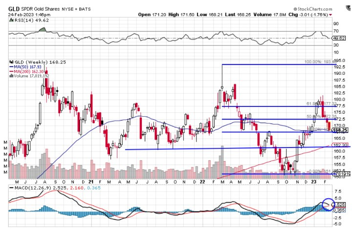 黄金:继续破位下行,去年11月至今年1月底回家涨的有多欢,现在跌的就有多痛苦,不得不承认黄金这一轮调整完全和美元负相关是出乎意料的,本以为因为地缘政治或者市场下跌会催生避险需求使得黄金走强,但现实并没有。所以我还是得回归到技术面上来,技术面反应当下,基本面会在长期走势里体现。黄金连续四周下跌,本周再次下跌了约1.8%,这一轮下跌幅度已经超过了7%,目前GLD来到了50周均线位置,这里也是去年3月高点以来至去年11月低点回调50%的位置,从MACD上看,虽然依然在零轴上,但如果不能快速拉升,则可能出现MACD的高位死叉,所以如果下周GLD有效跌破168,黄金的仓位需要减少,但如果黄金下周能够稳住并且反弹,则黄金的周线图则可能走出一个头肩底的走势,在美元短线技术见顶的情况下,我还是倾向于认为黄金会在这个价格区间稳住,并且会有一轮不错的反弹。黄金股本周表现也不理想,GDXJ跌幅接近5%,连续5周下跌,之前我给出过统计数据表明黄金股的平均调整周期是1个月零7天,我们其实也非常接近这个值了,虽然此时此刻看着黄金股挺沮丧的,但机会往往就孕育在市场不抱希望的时候,我旗帜鲜明的看好下周黄金、黄金股的反弹。我两周前抄底的GDXJ被套7%,两个黄金股,一只PAPER GAIN 3%,另一支赚了6%+走了,这笔交易总体依然在水上。