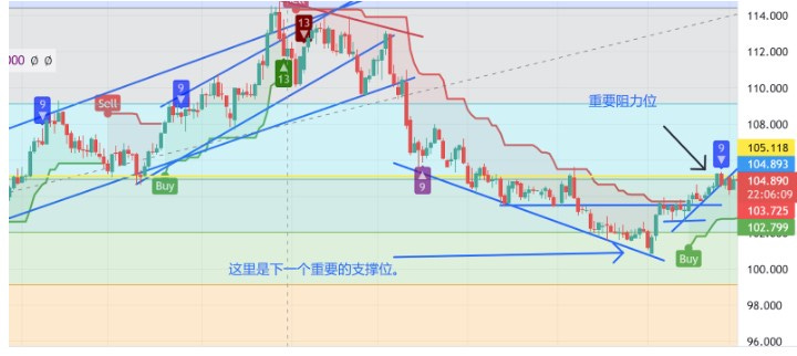美元指数:美元今天走了一波强势反弹,上涨0.5%,但还是没有有效突破105.2,收盘又回到了105的下方,今天美元的走强和国债收益率一度大幅飙涨密切相关,但美元也未能形成技术性突破。美元近期的涨势还是对美联储可能延长加息周期、提高加息幅度的反应,也是之前连续4个月下跌后的技术性反弹,在美联储给出一个确定性的加息路径之前,美元指数很难有大幅突破,今天105.2再次成为其重要阻力位。市场目前预期/现实没有大的变化,预计美元指数会在近期的大幅反弹后逐步走弱。