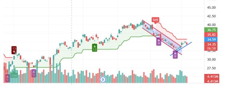 市场连续第三天走高,从周四低点288到今天高点303,QQQ涨幅超过了5%,但是最终QQQ的走势是冲高回落,收盘也未能收在301以上,日线图上留下了较长的一根上影线,这也通常是短期的顶部信号。