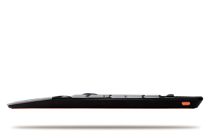 背面是橘红色的,很Sexy~鼠标是付在键盘上的Laptop式滑鼠