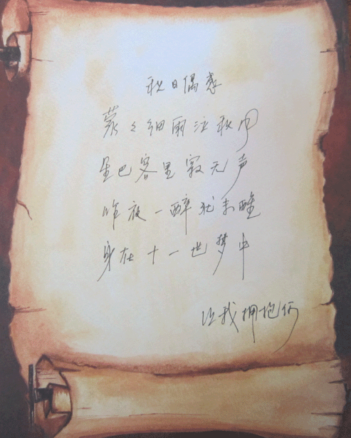 前些日子想把自己写的一点儿诗整理一下,发现里面的有一半几乎是与水楼有关的。有的是在水楼有什么活动时写的,有的是在自己写的小说里写的,比如像《十一世》里有一世是汉朝的书生与公主相恋,所以自己写了一点儿诗在里面来衬托书生对公主的爱。借这个机会把这几年零零散散写的小诗贴在这里,因为写的不好,就不在写意天地里单开帖子了,反正出丑也是在这条街上,人不多,也都是朋友。